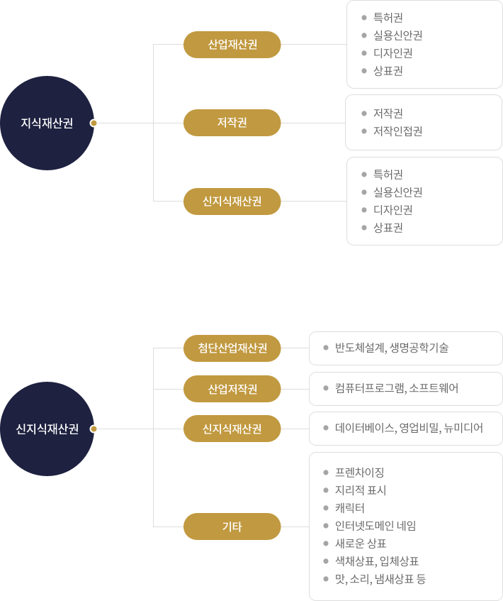 지적재산권은 무채적 재산권이라고 말할 수 있고 더 세부적으로 나누게 되면 산업재산권과 저작권과 신지식재산권으로 분류됩니다.